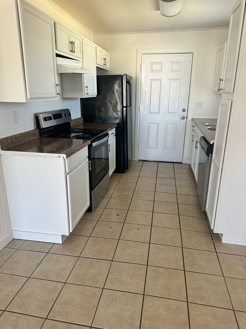 This quaint 2 bedroom 2 bathroom duplex features tile flooring through out, laminate counter tops in the kitchen, has stackable washer & dryer hook ups, the primary bedroom features an in suite bathroom with a walk in shower and also features a sliding glass door into the private backyard. Shared driveway with unit A.